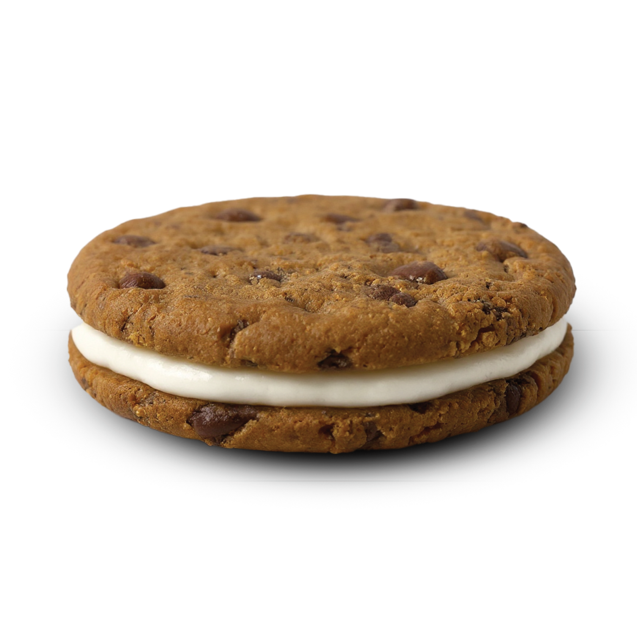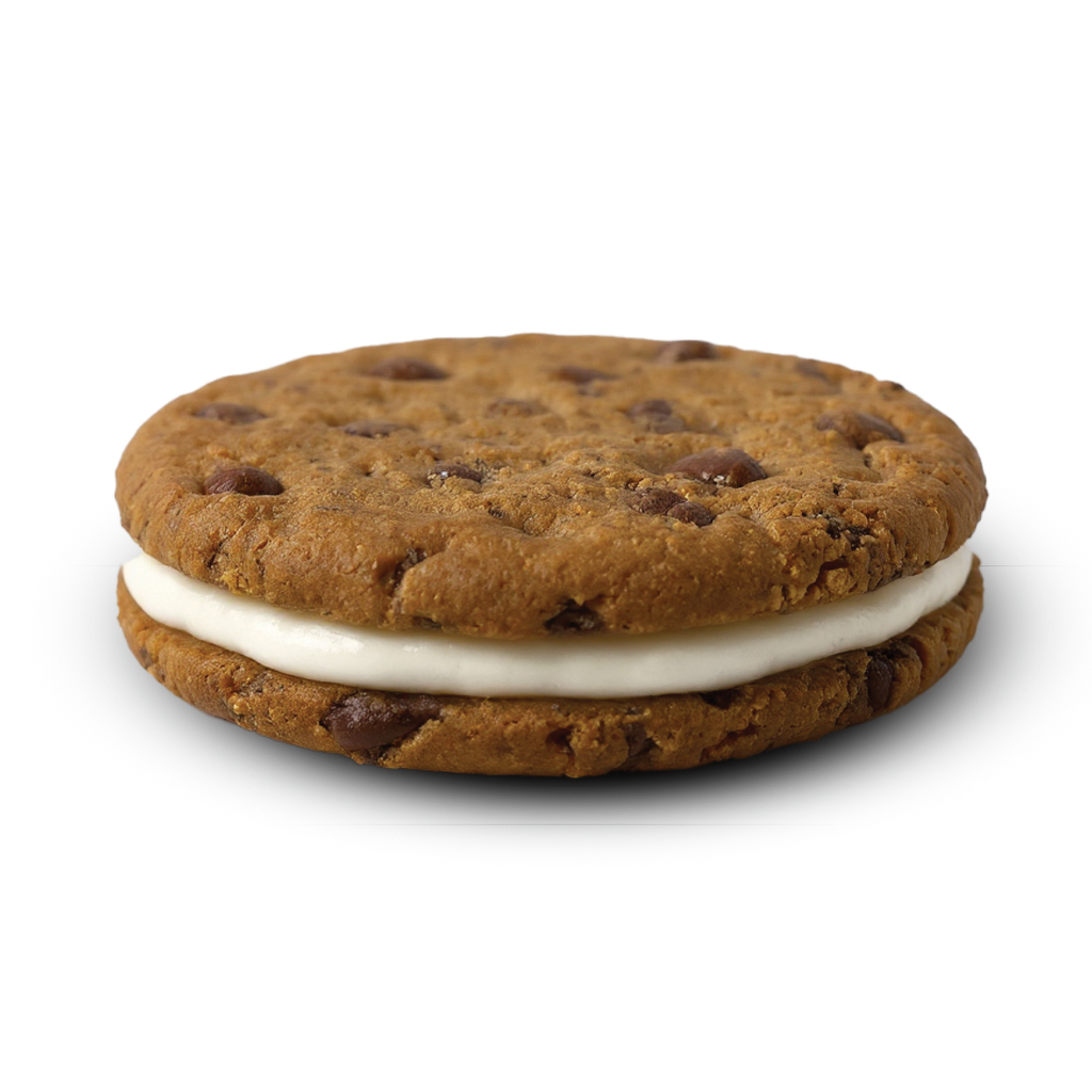 Homemade-style, classic chocolate chip cookies come together through a layer of fluffy, sweet vanilla creme that tastes like your own private cookie cake.